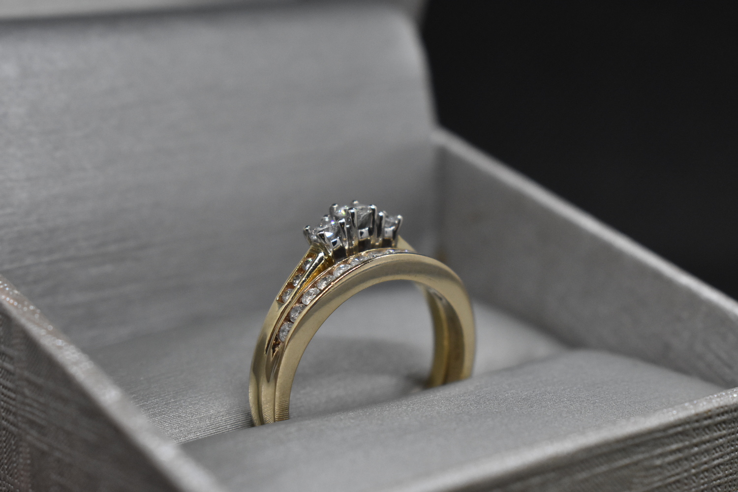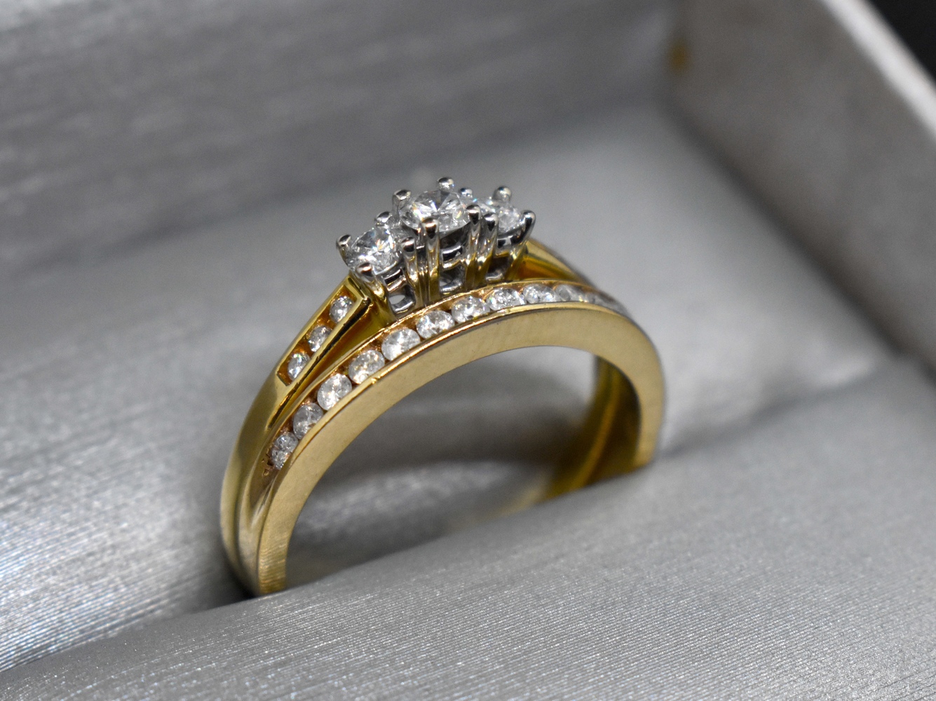 14K Yellow Gold Ring Set with Clear Gems