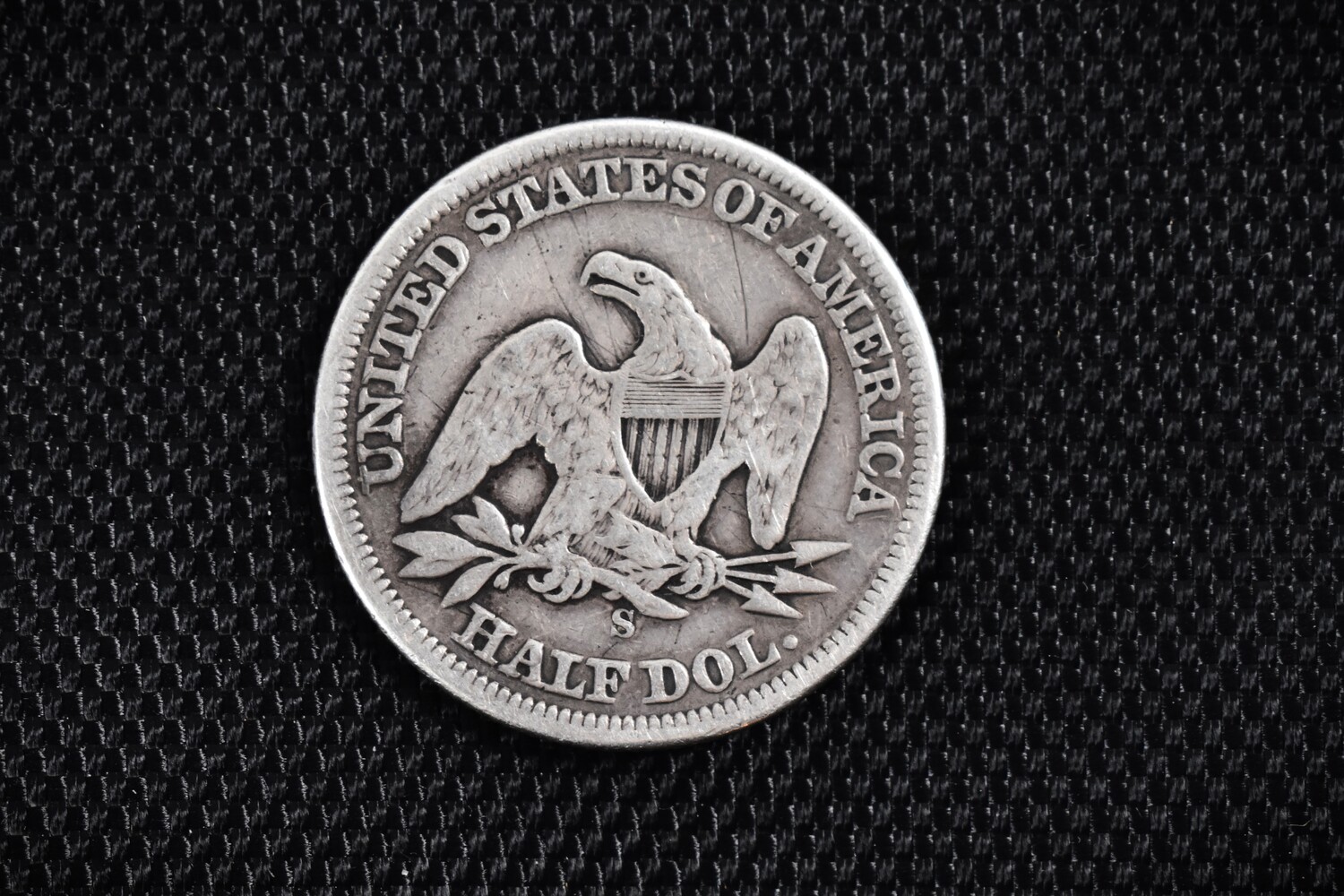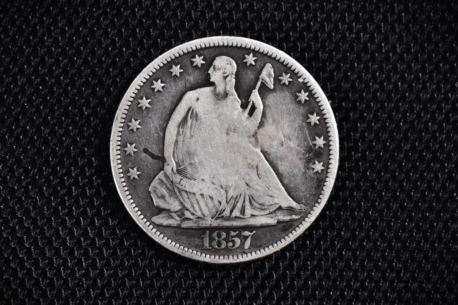 1857-S USD Silver Half Dollar - 0.900ag silver content.