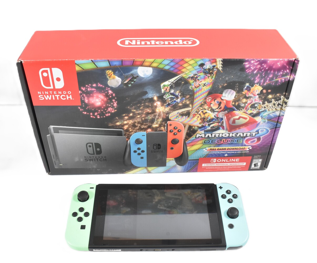Includes: Console, dock, two joycons, joycon straps, joycon controller slip,and charger
