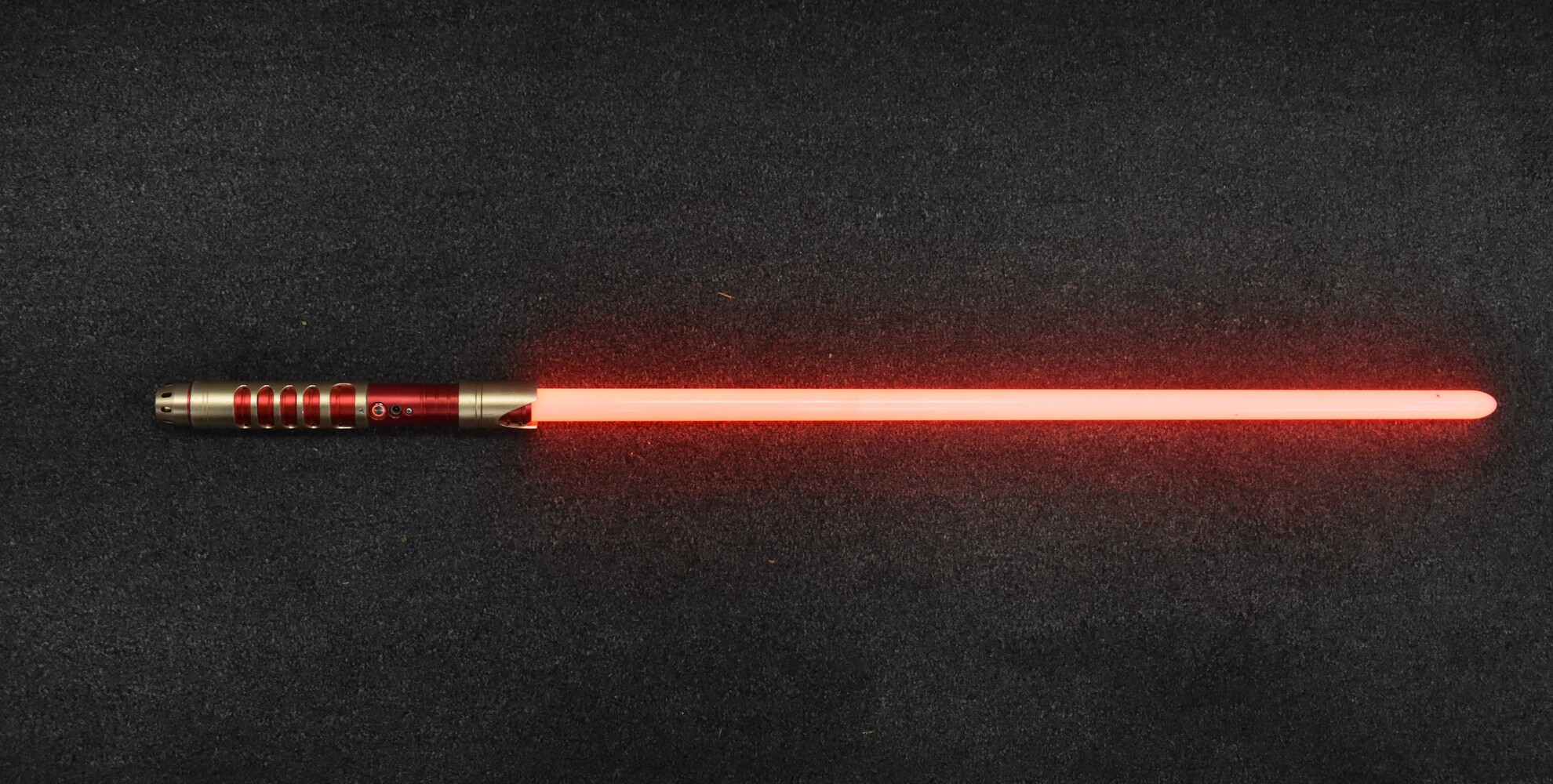 With a 33" blade and sleek red and gold metal hilt that looks as if it was designed by Tony Stark himself.